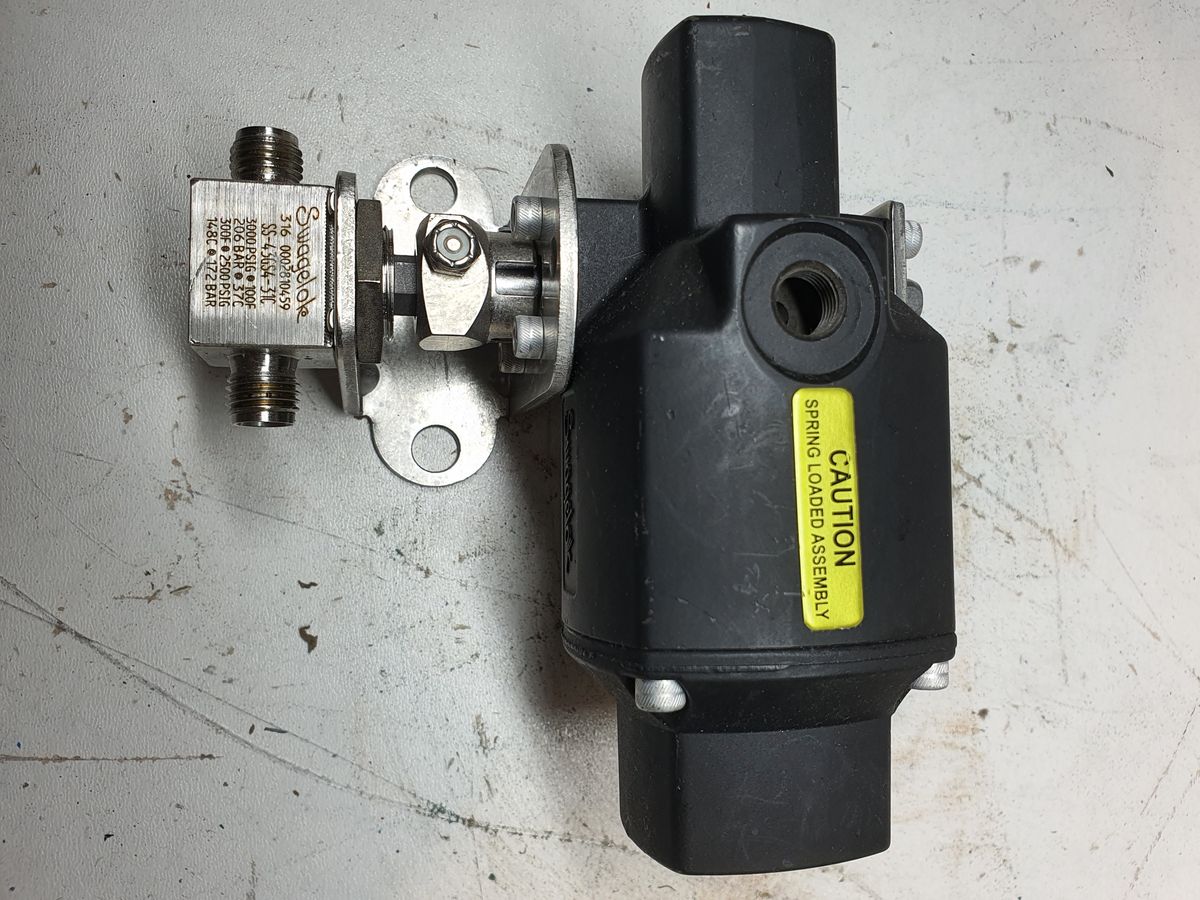 SS-43GS4-31C — Stainless Steel 1-Piece 40G Series Ball Valve, 1.4 Cv, 1/4 in. Swagelok Tube Fitting, NC Actuator