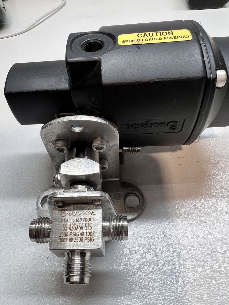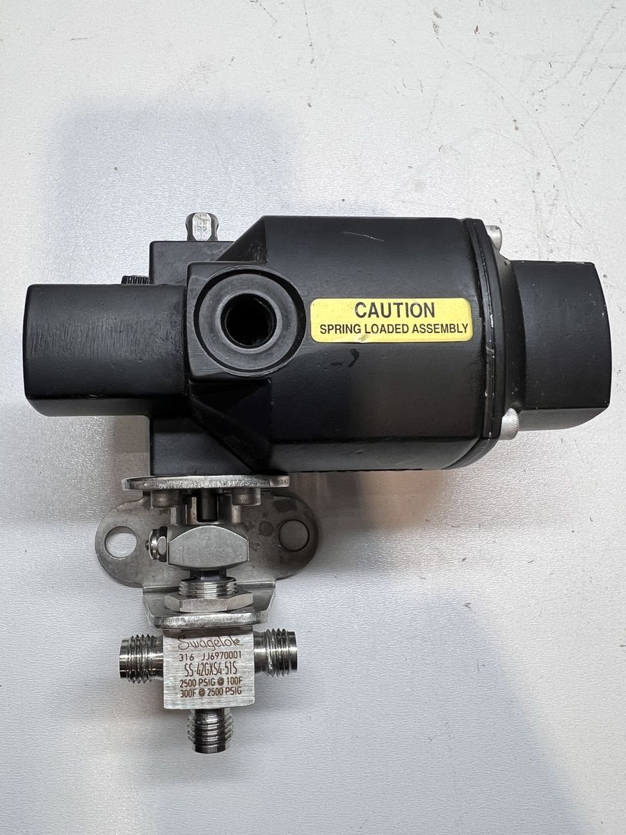 SS-42GXS4-51S — Stainless Steel 1-Piece 40G Series 3-Way Ball Valve, 0.35 Cv, 1/4 in. Swagelok Tube Fitting, 180° Spring Return Actuator