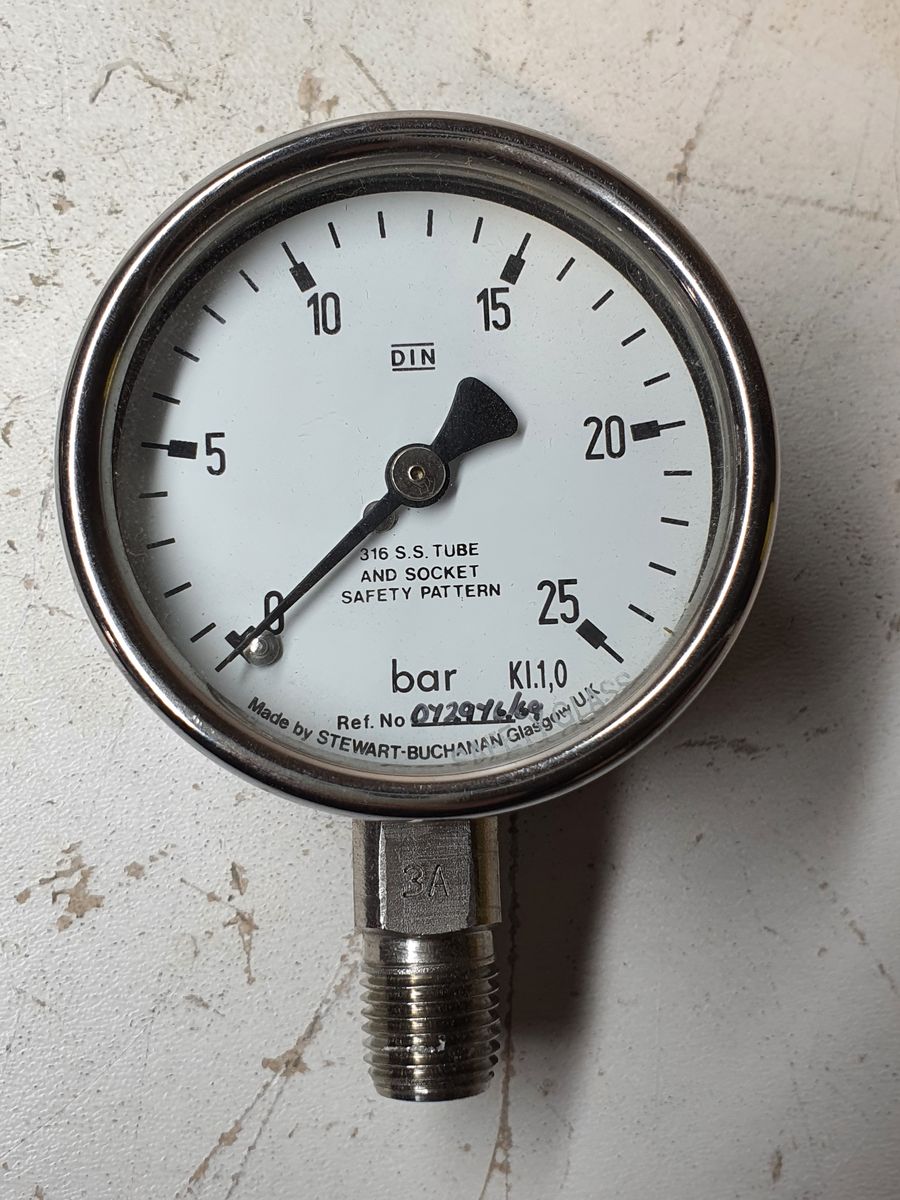 Stewart Buchanan Pressure Gauge 0-25 bar 1/4 NPT Male 63mm